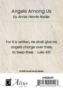 This painting is of a woman in prayer, at the moment her prayers are being answered. Often our prayers are answered by angels- seen and unseen- in the form of friends, family, and loved ones who have passed on. It is a sacred moment to realize God's hand in our lives, and a reminder for us to see that angels are among us.